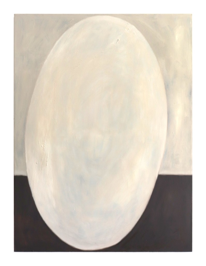 Muna ja Horisontti / Egg and Horizon, 160 cm x 120 cm, Itse valmistettu öljymaali kankaalle, 2024, Eeva Lietonen