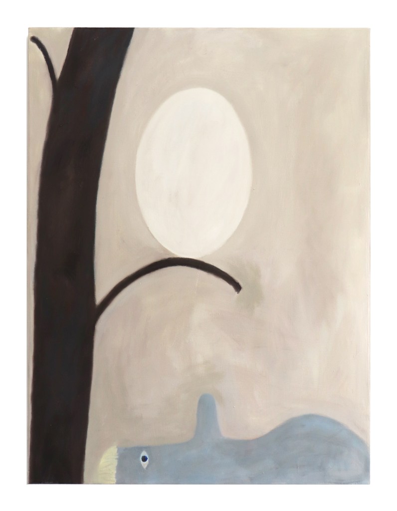 Oksan Alla / Under the Branch, 160 cm x 120 cm, Itse valmistettu öljymaali kankaalle, 2024, Eeva Lietonen